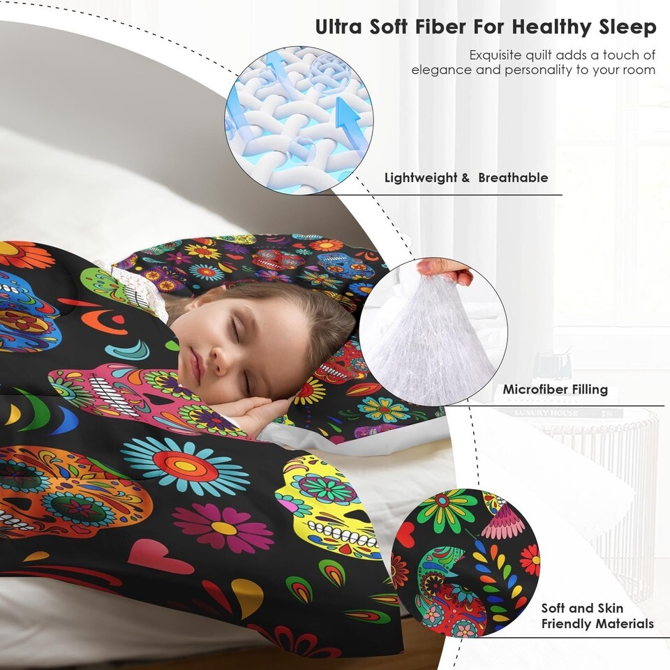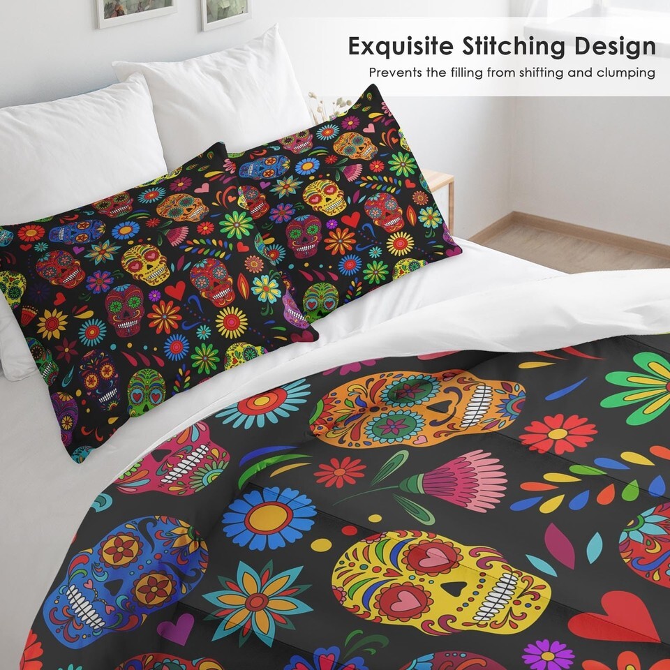 Pamnest Dead Sugar Skull Full Comforter Set, 3 Pcs Soft Microfiber Bedding for K