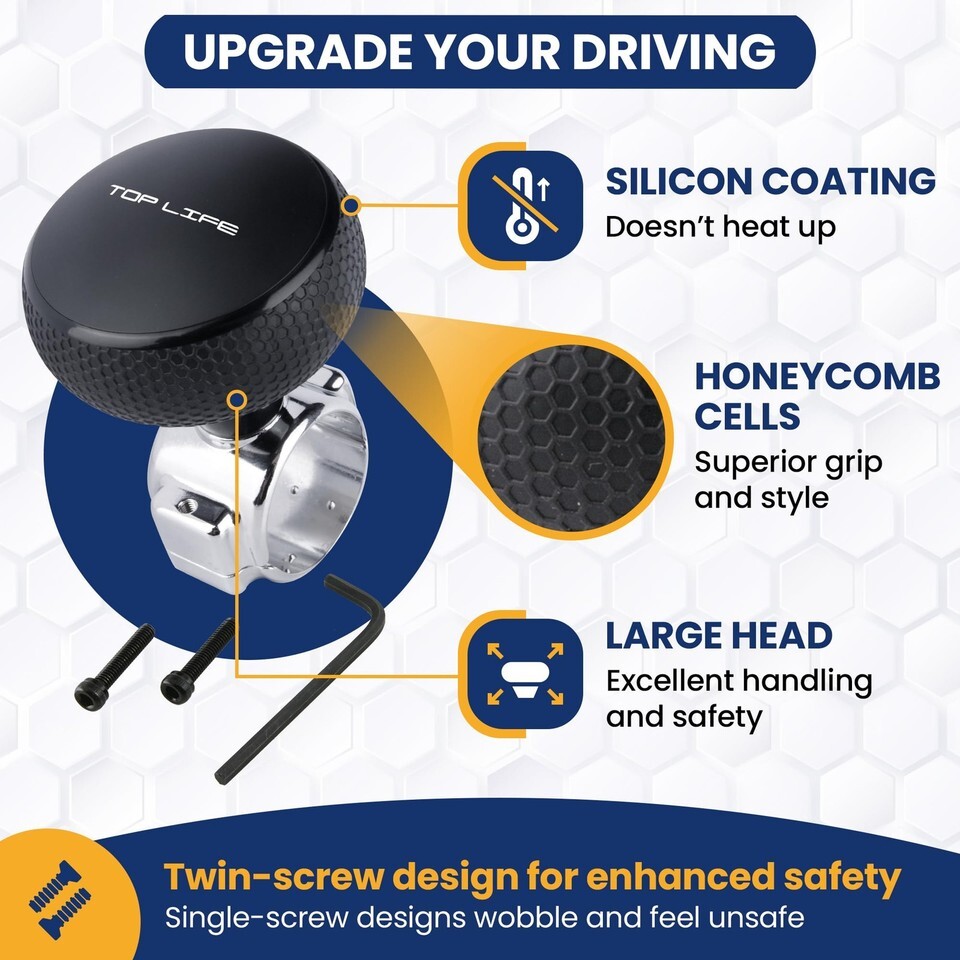 Top Life Truck Steering Wheel Knob - Silicone-Coated, XL Spinner, Heavy Duty