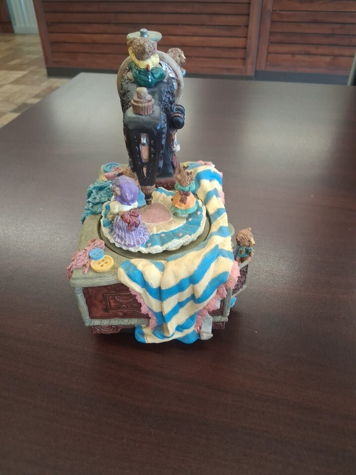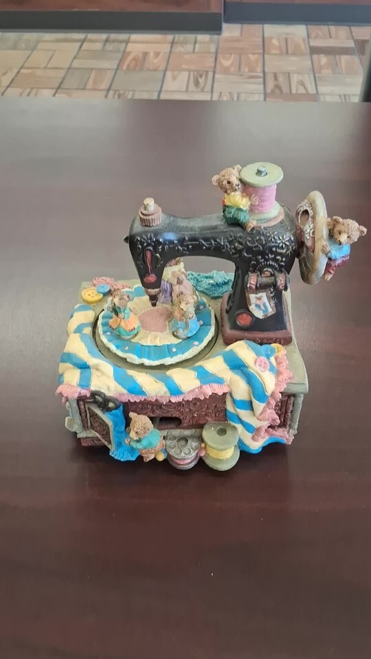 The San Francisco Music Box Bears Playing on Sewing Machine is a vintage music box featuring intricate craftsmanship and charming design. Manufactured by the San Francisco Music Box Company in China, this pre-1900 collectible showcases the unique combination of music and playful bears engaging in a sewing machine scene. With its nostalgic appeal and timeless charm, this piece would make a delightful addition to any music box or decorative collectibles collection.