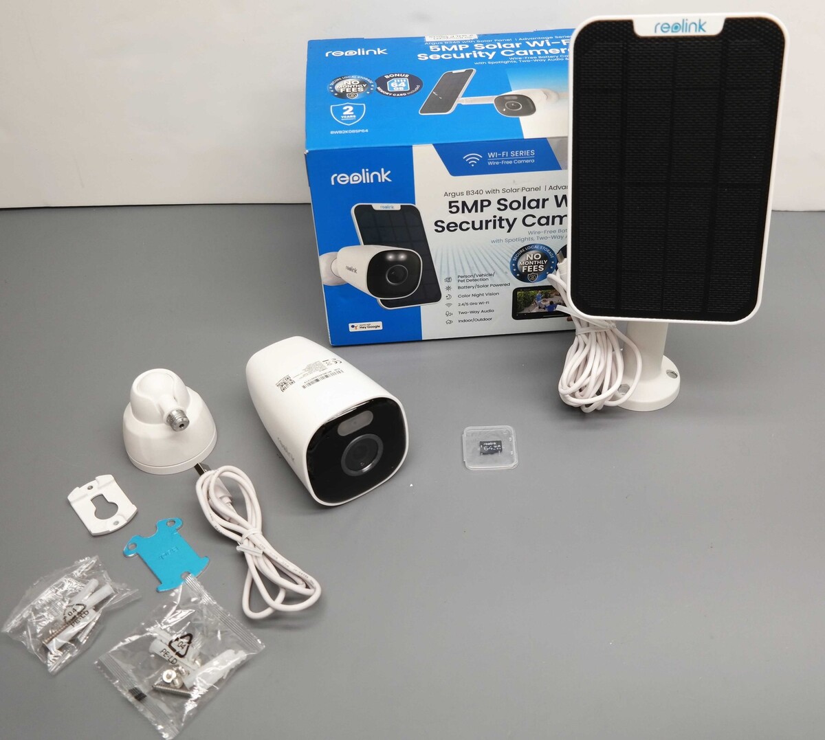 Description: Includes Retail Packaging, Camera, Solar panel, Mounting bracket, 2 mounting plates, USB-C cable, micro SD Card, Screws. Scratches on the bodies of the camera and solar panel.