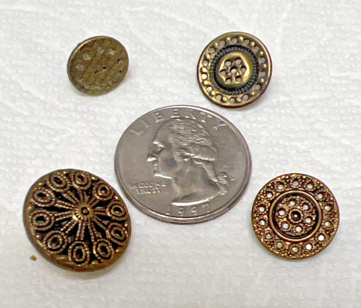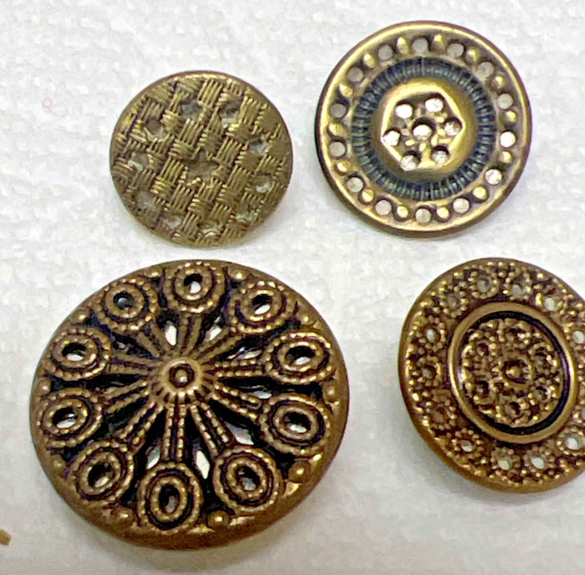 4 Antique Metal Buttons Open Rope & Star Designs w Flasher Silver Background