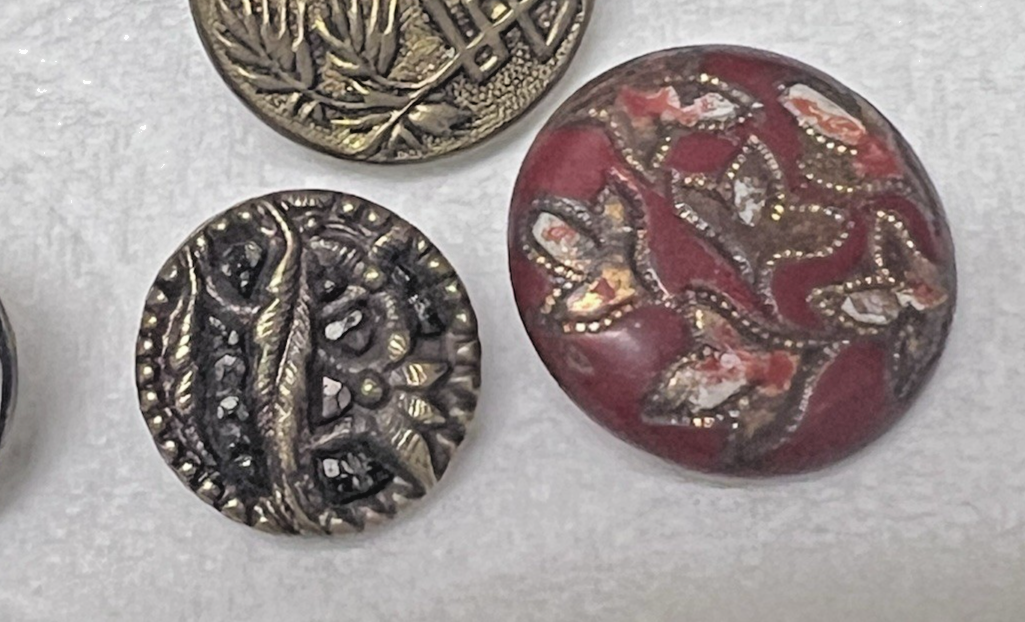 4 Antique Metal Dress Buttons w Leaves and similar items
