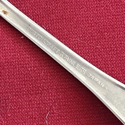The product is a vintage Customcraft CUS10 place/oval spoon, measuring 7 inches in length. Made of stainless steel with a silver color, this original spoon was crafted in Japan. The handle is also made of stainless steel, making it a durable and high-quality collectible piece for any kitchen or home decor enthusiast. Perfect for adding a touch of nostalgia to your flatware collection, this unique spoon is a standout piece for those who appreciate vintage items.