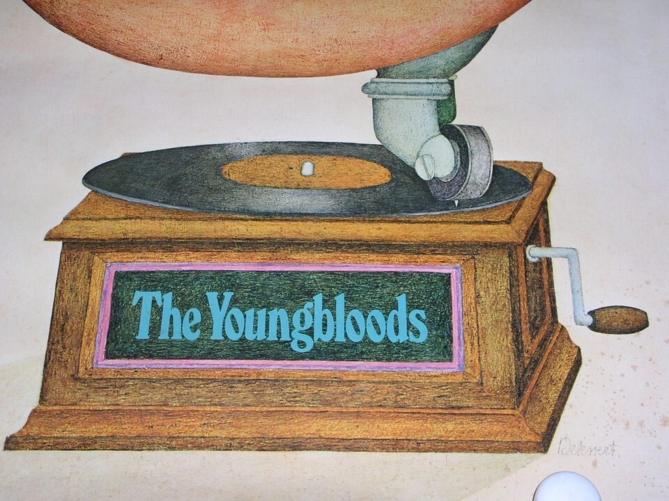 This is a vintage poster entitled, "The Youngbloods". Dated 1969 RCA Records. This is poster #PJ 3204. Artwork by Delenert. A terrific item for the fan or collector. * This is not one of those new reproductions. It is vintage.