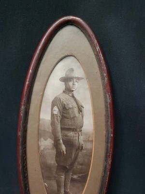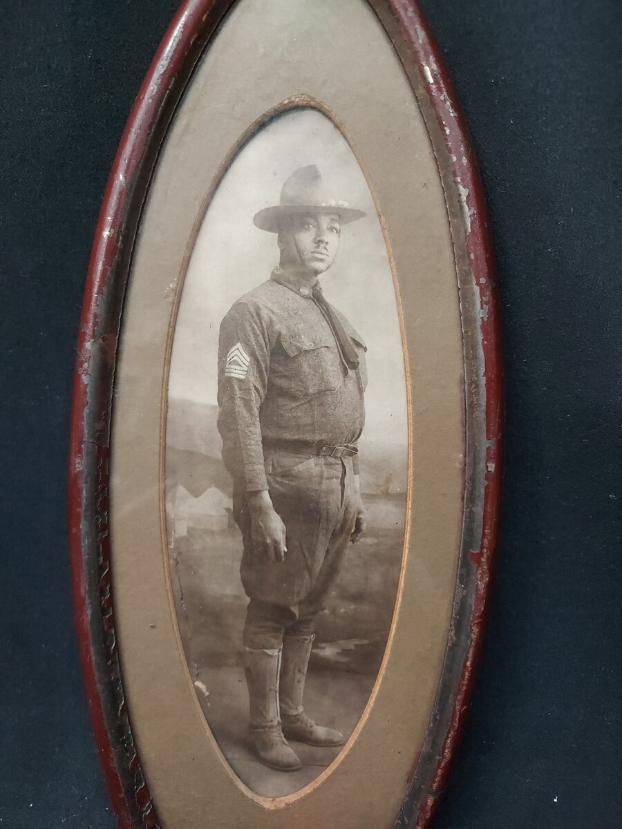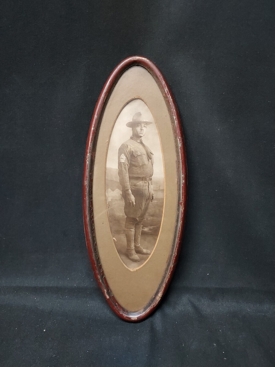 ORIGINAL WWI African American Soldier Doughboy Military Full Body Framed Photo