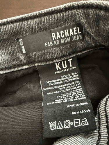 KUT from the Kloth Rachael Hi Rise Mom Jean Emulate Grey Black Wash 14