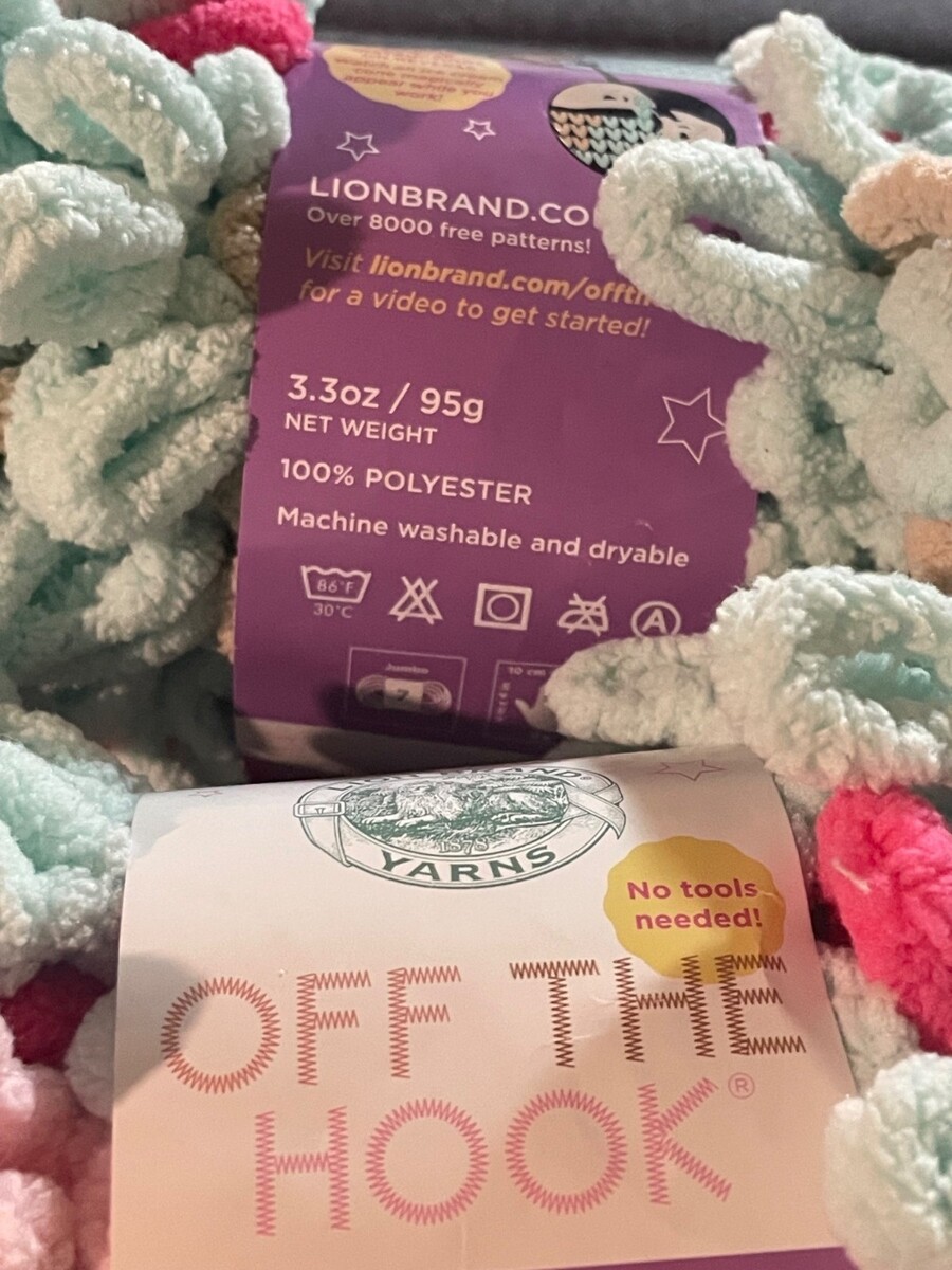 This listing includes TWO (2) skeins of Lion Brand Off The Hook Magic loop yarn in the discontinued Ice Cream colorway (509). Both skeins are from the SAME dye lot (46206), making this bundle ideal for larger projects or for completing an existing blanket with consistent color matching.