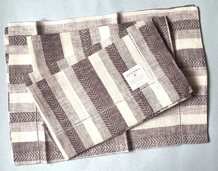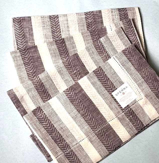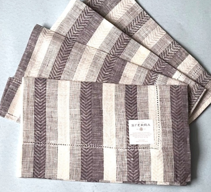 Sferra Ascot Raisin Placemats Herringbone Stripe Linen 4 PC. Hemstitch 14x20 New