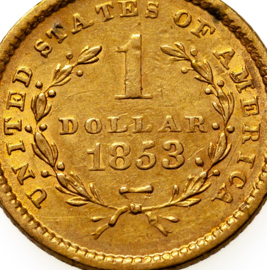 1853 G$1 Gold Liberty One Dollar in About Uncirculated AU Condition