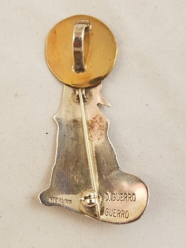 Up for sale is a sterling D Guerro howling wolf pin, broach, pendant. The piece measures 2" x 1".
