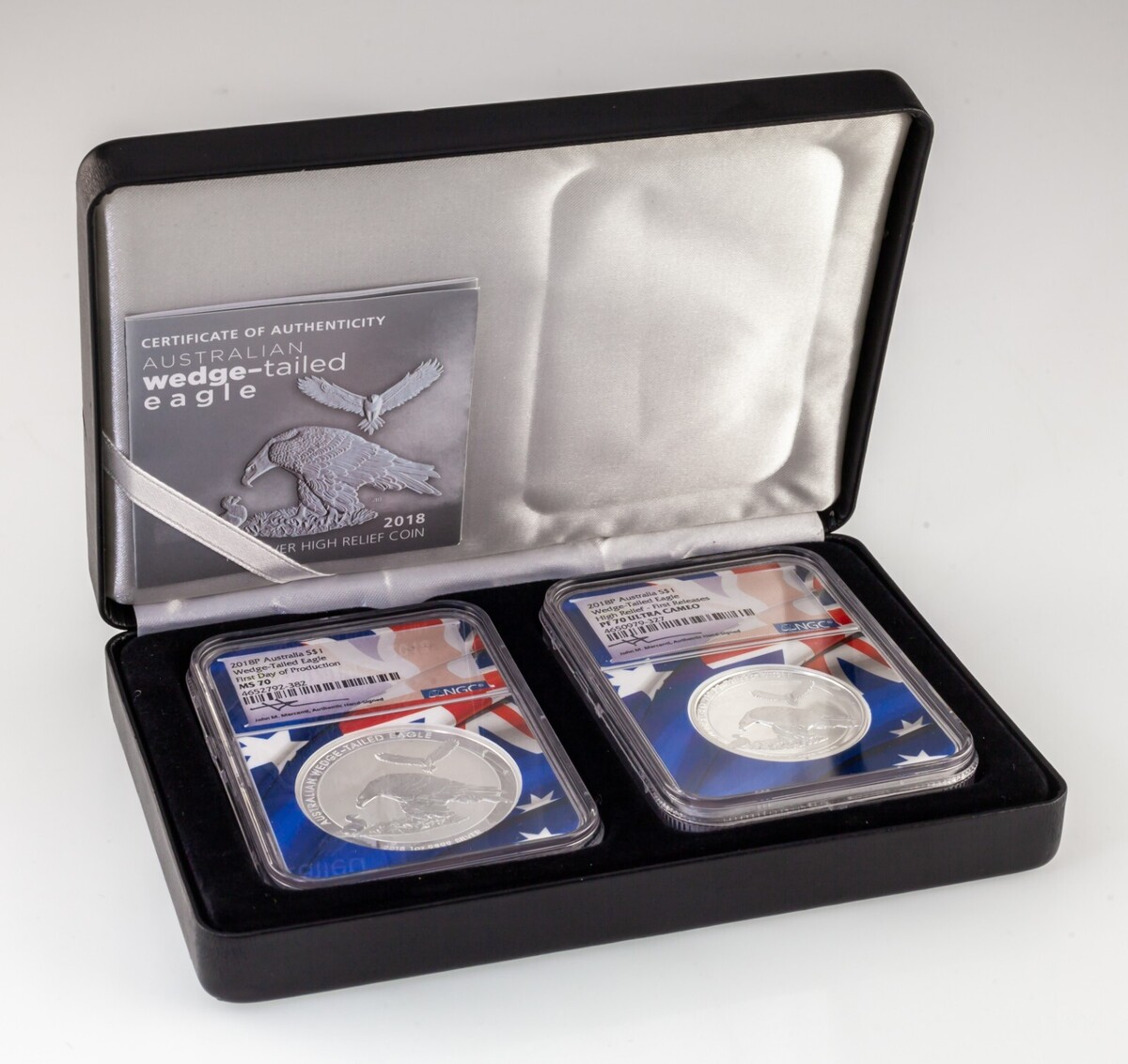 2018-P Australia S$1 Two-Coin Wedge-Tailed Eagle Set First MS/PF70 UCam Mercanti