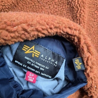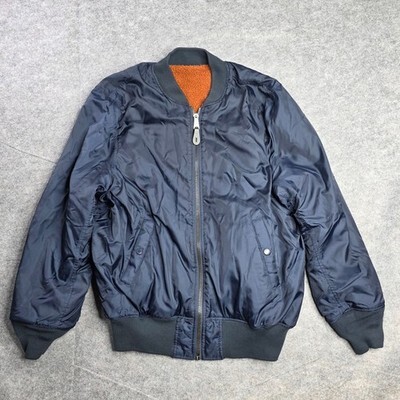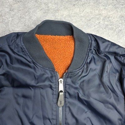 Alpha Industries Reversible Sherpa Bomber Jacket Men's Small Navy Blue Orange