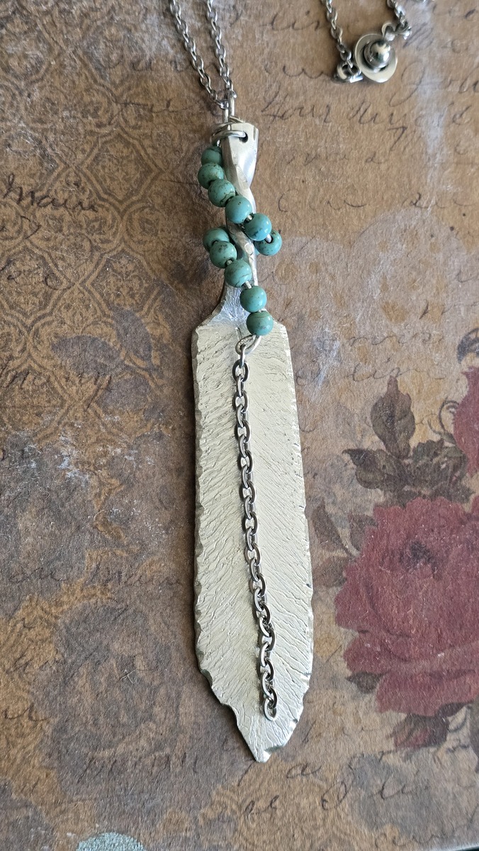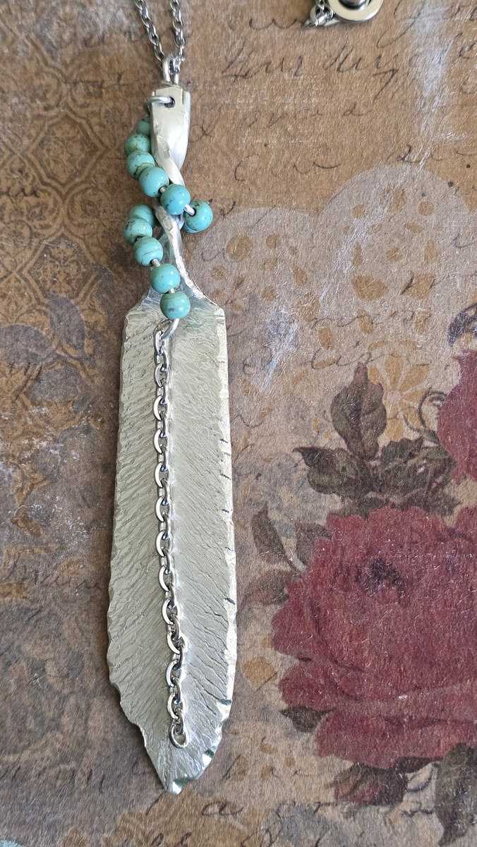 Feather necklace from silverplate butter spreader