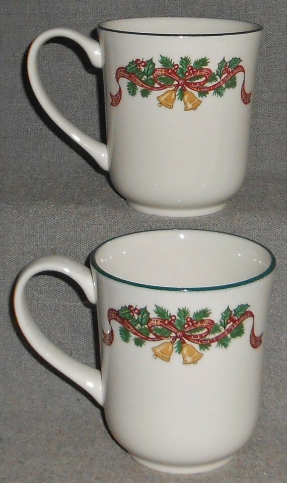 Set (2) Johnson Brothers VICTORIAN CHRISTMAS PATTERN 10 oz Handled Mugs ENGLAND