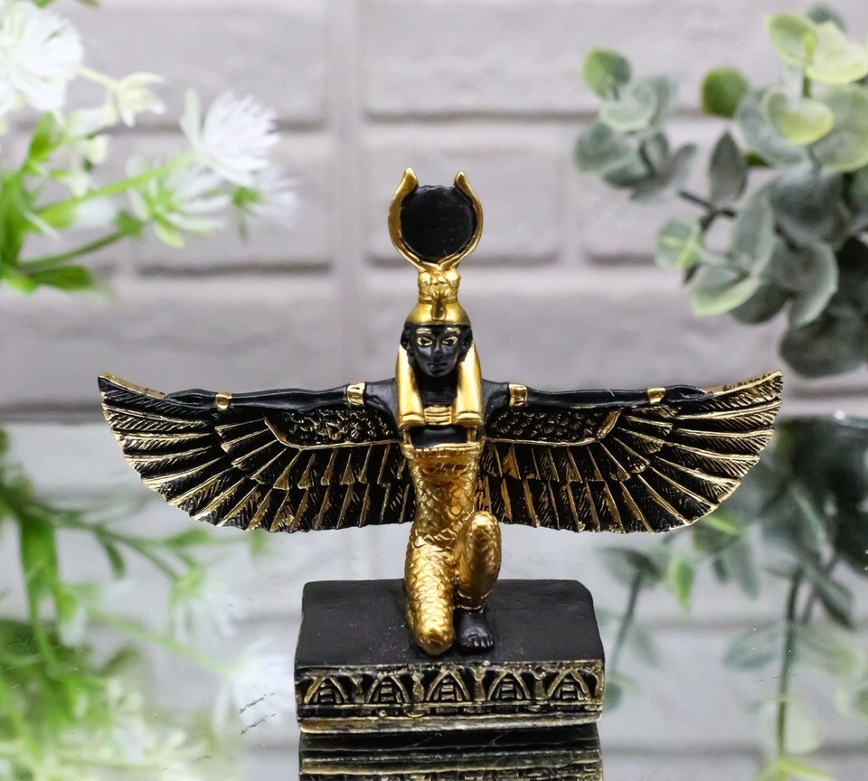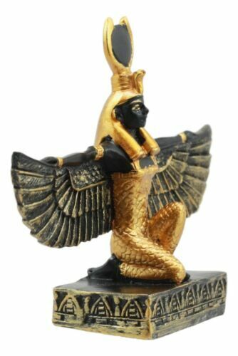 ? Celebrate the best of the Ancient Egyptian Civilization with this miniature Goddess Isis. Isis is seen here kneeling with her wings stretched out open. Isis is the goddess of Magic and Protection. Use her as a teaching tool for great minds or collect them for yourself!!!