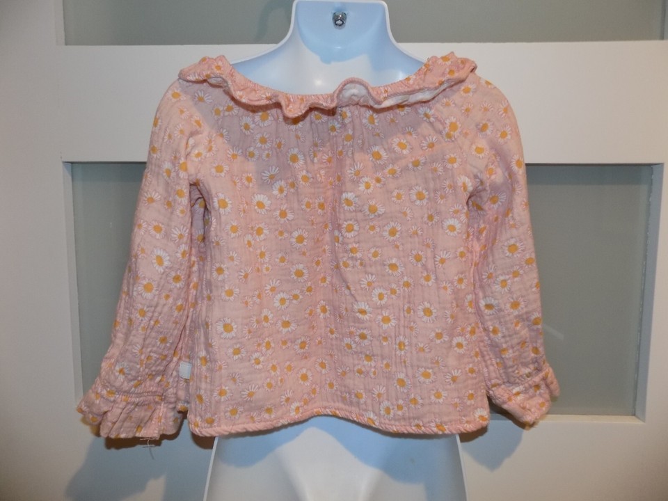 7 For All Mankind Daisy Print LS Shirt Ruffle Neck Size 2T Girl's
