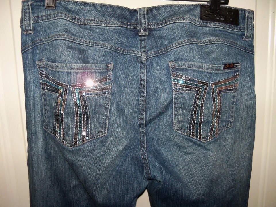 SEVEN 7 SLIM BOOT WITH SHINNY SEQUINS WOMENS JEANS SIZE 14 WOMEN'S EUC