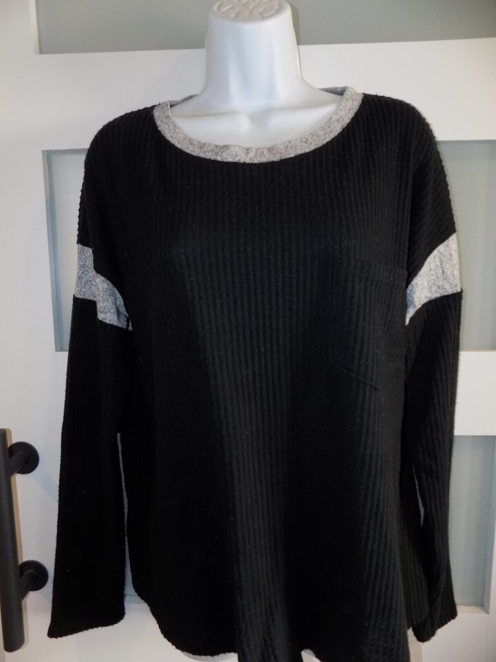 So Cozy Top Black Long Sleeve Waffle Varsity Shirt Size L Women's