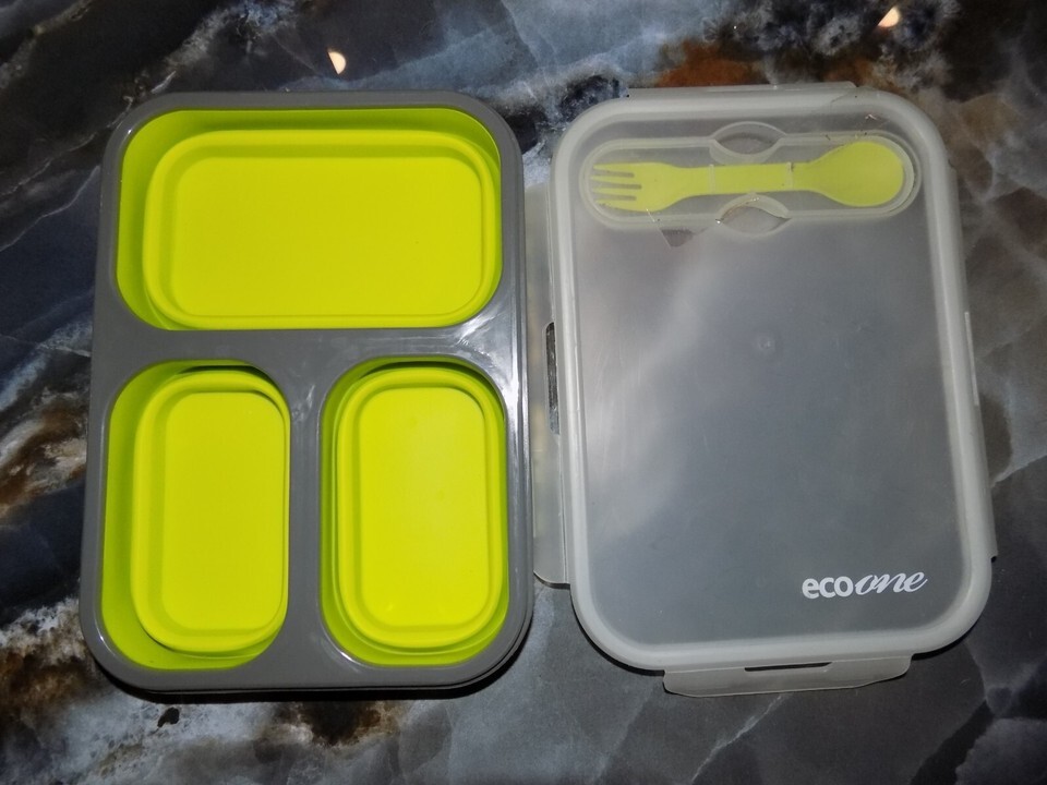 BPA-Free ECO ONE Collapsible 3 Section BENTO BOX Lunch Storage Silicone Yellow