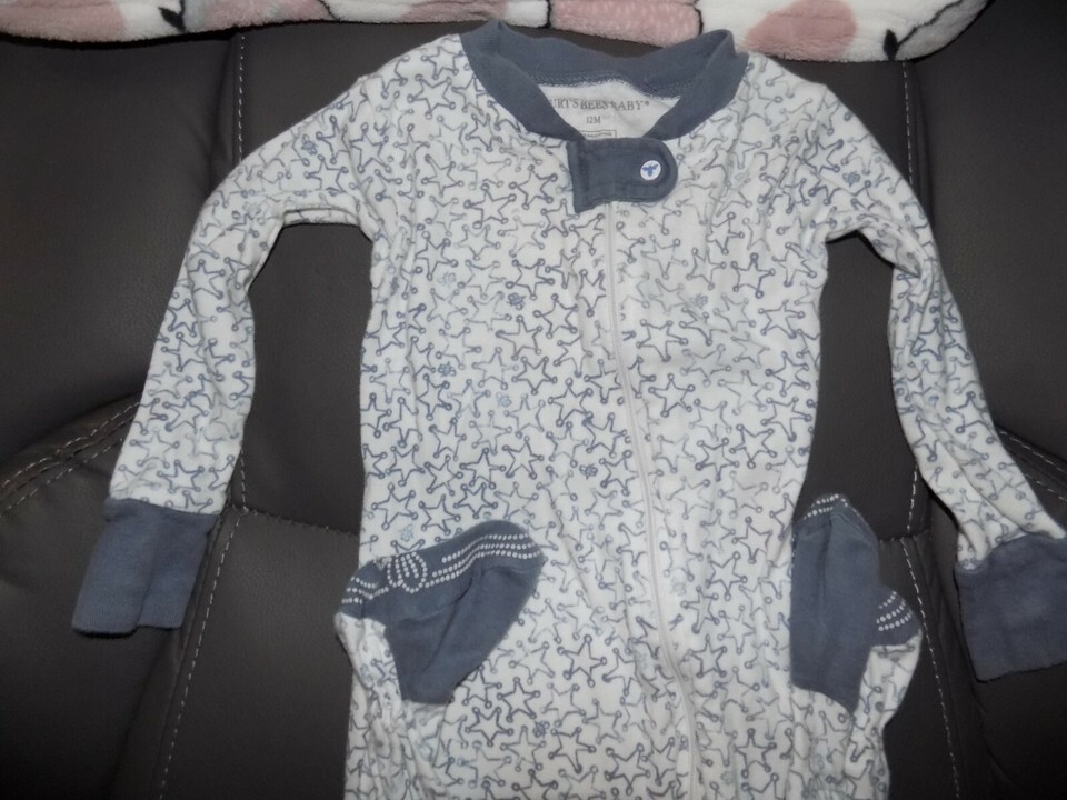 Burt’s Bees Baby White W/Blue Stars Organic Footie Sleeper Size 12 Months EUC