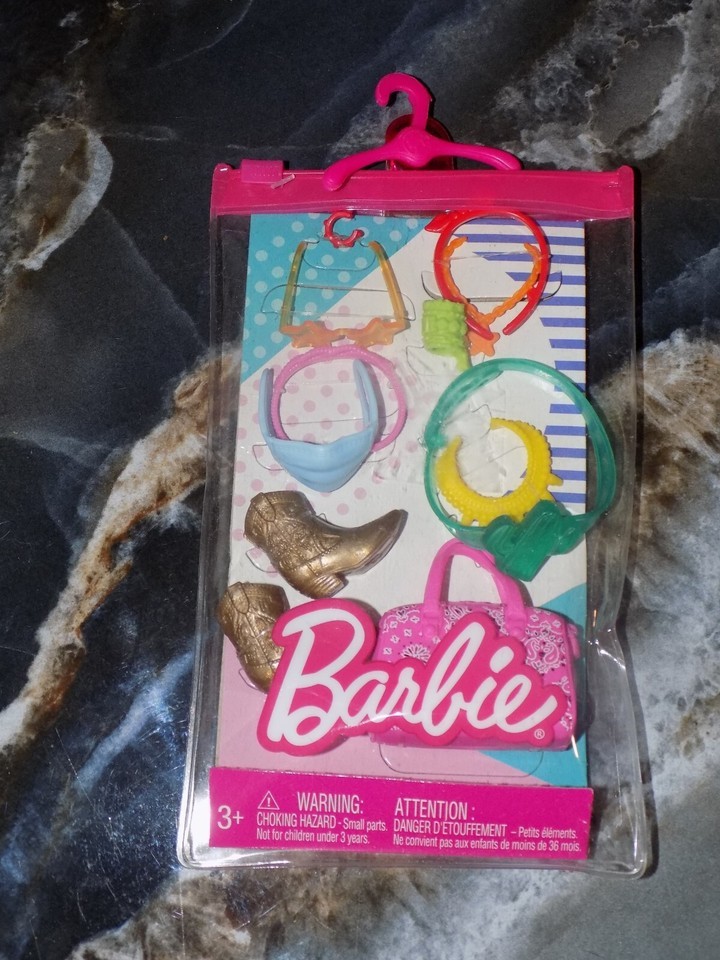Barbie Doll Accessories: Storytelling Pack- Bag, Mask, Jewelry, Boots NEW