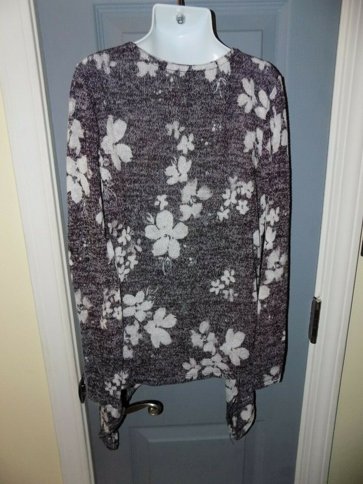 Justice Black and White Flower Print Cardigan Sweater Size 8 Girl's EUC