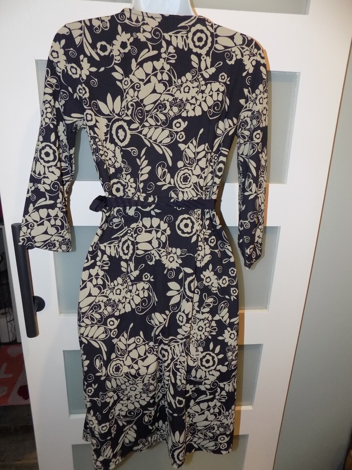 Crafted to suit the petite frame, this size 2P dress boasts a stylish wrap design that accentuates the waist and complements the silhouette. The rich brown hue lends a timeless appeal, while the designer theme echoes a sense of luxury. Whether you're heading to the office or enjoying a weekend outing, this dress strikes the perfect balance between elegance and comfort.