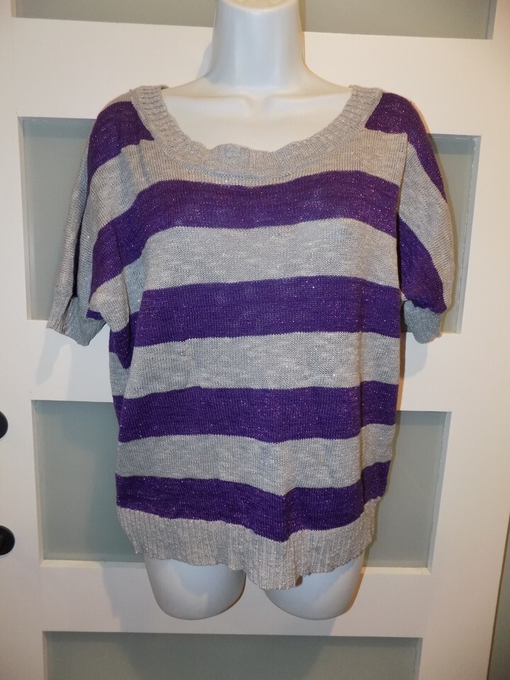 Lei Purple Siren Striped Short Sleeve Sweater Size 2X Women's NEW