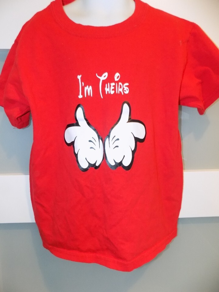 I'm Theirs Cartoon Mickey Mouse Hands Red SS T-Shirt Size XS Youth