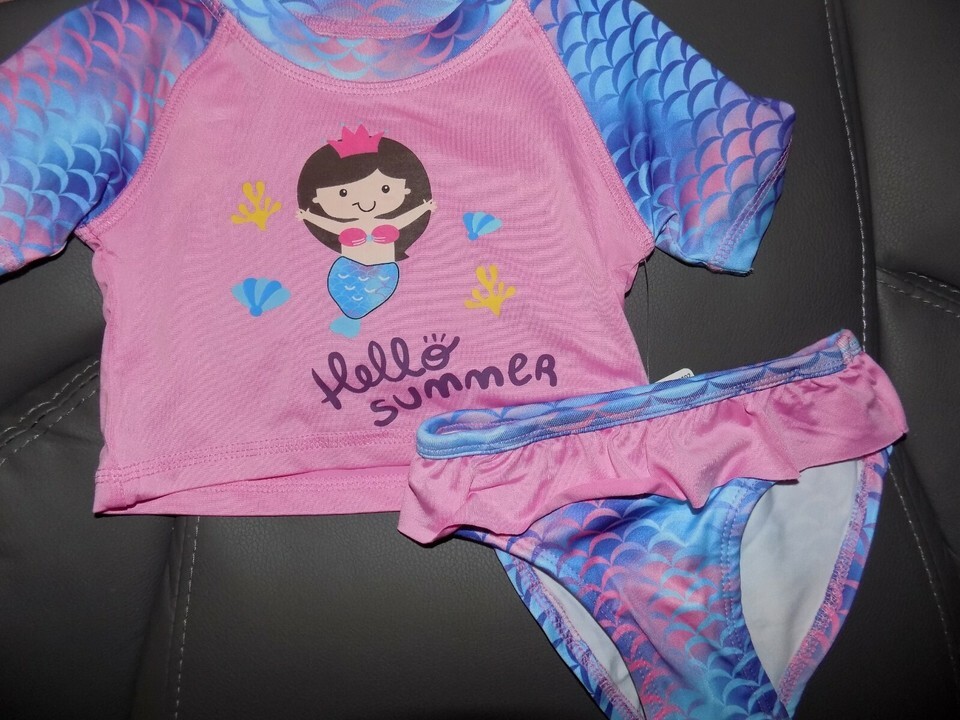 Swiggles 2PC Mermaid Hello Summer Baby Bathing Swim Suit Size 12M Girl's NEW