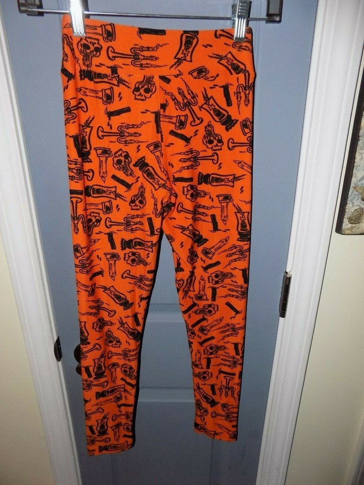 LULAROE Halloween Orange W/Black Candles & Skulls Size Tween Girl's EUC
