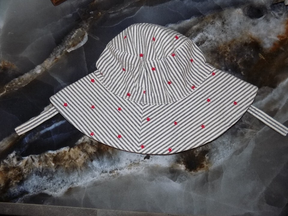 Janie and Jack Blue Railroad Stripe/Stars Bucket Hat Size 0/6 Months Girl's NWOT