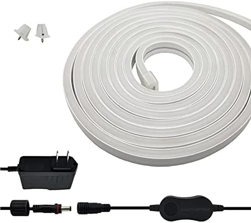 16.4ft flexible neon LED light strip RGB LED lights with multicolor and multiwhite lighting effects Seamless operation with the smart app or by voice-assisted control Water-resistant strip lights for indoor and outdoor use Includes mounting clips, screws, power adapter, and 8? in-line cord