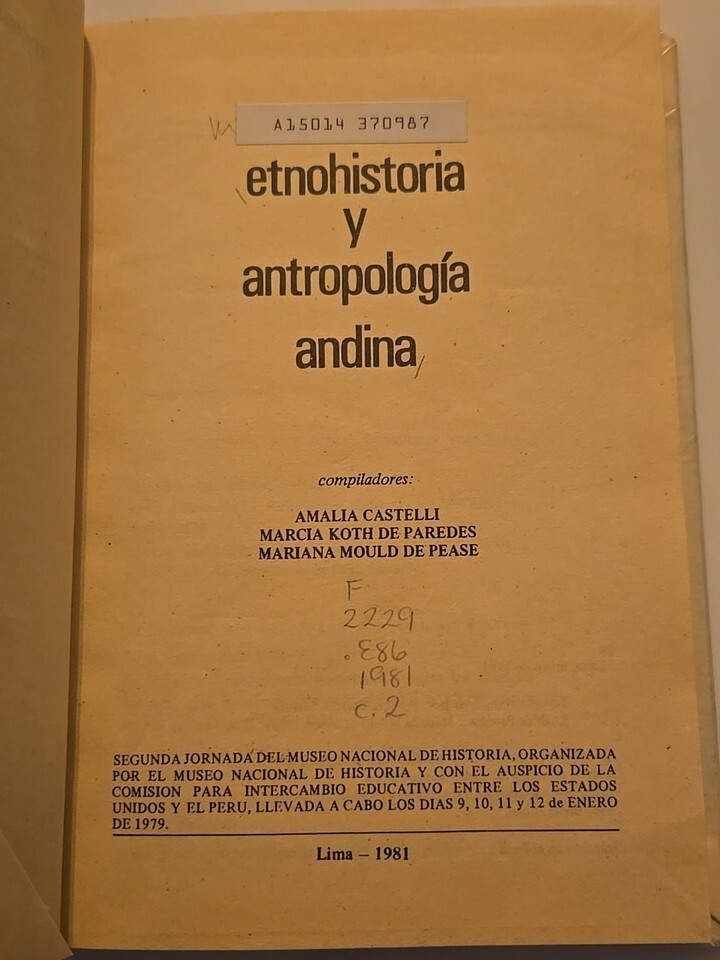 Rare - Etnohistoria y Antropología Andina, Lima Peru 1981