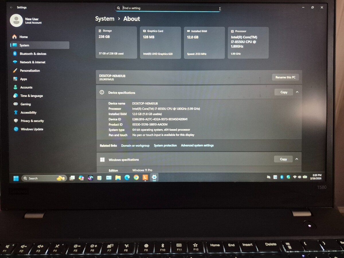 Lenovo Thinkpad T580 Laptop i7-8550U 12GB and similar items