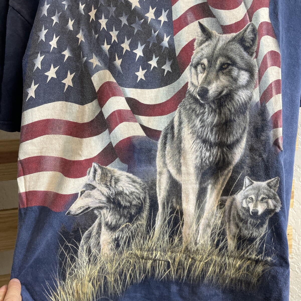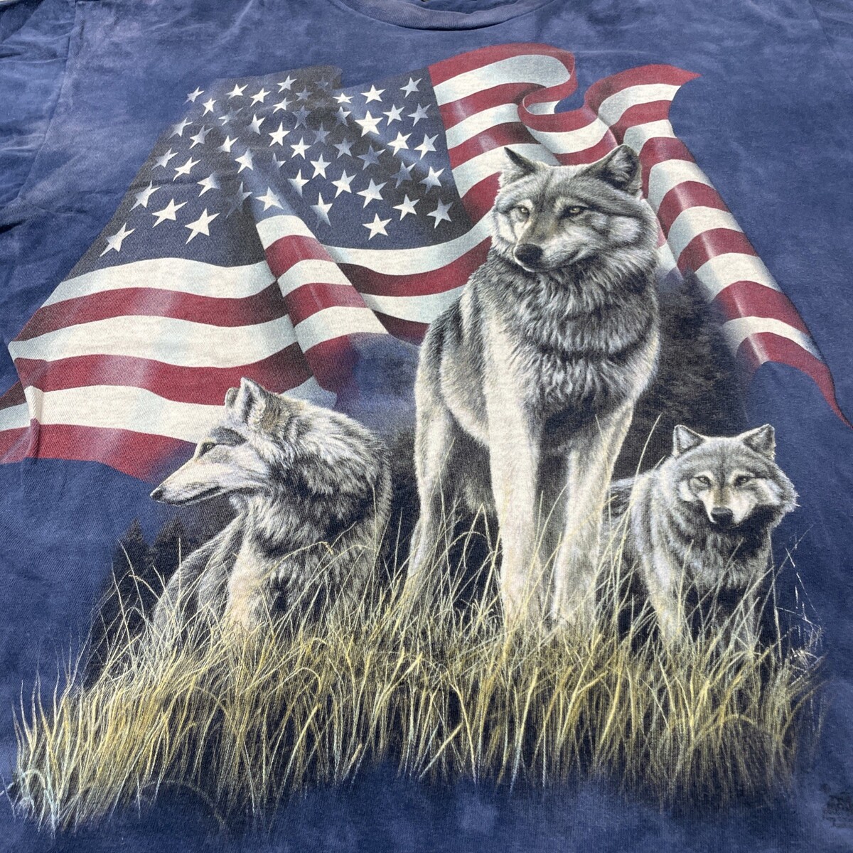 Vintage The Mountain Wolf Wolves American Flag T-Shirt Men's Size Large MH JD