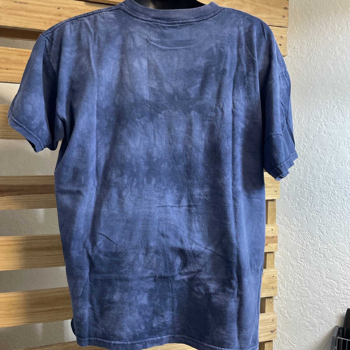 Preowned, good condition. Light tie dye design. Right sleeve has a loose thread. Neck appears to have some light fading from wear.