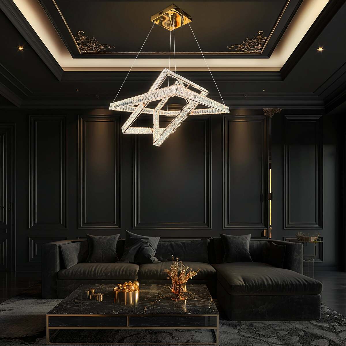 Elevate your interior with this stunning 3-tier LED masterpiece, meticulously crafted with 30% full lead crystals for unparalleled brilliance. Featuring a sleek, polished stainless steel frame, the middle and small tiers are fully adjustable, allowing you to create a customized artistic look.