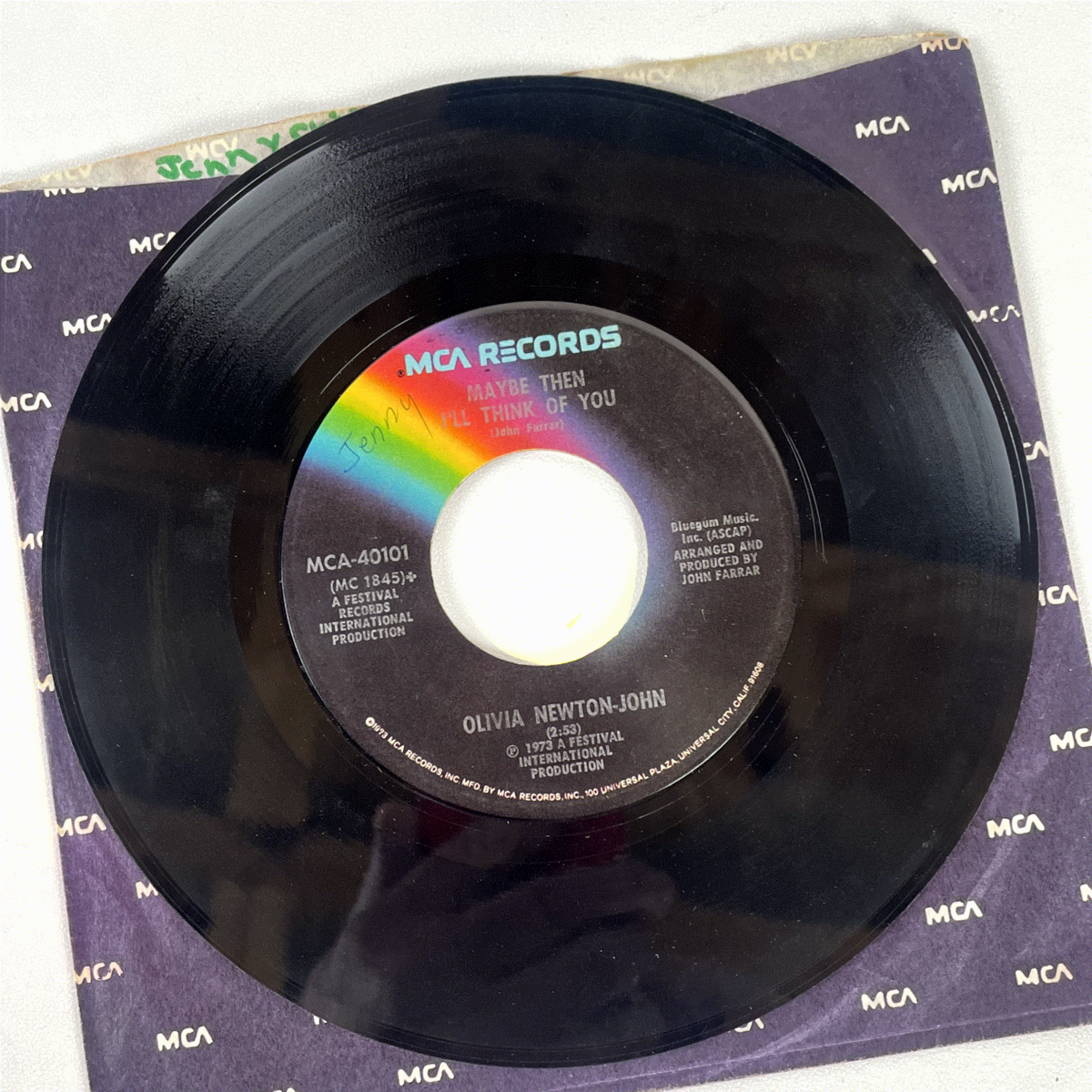 This 45 RPM 7-inch single is a must-have for collectors of Olivia Newton-John's discography or enthusiasts of 1970s pop music. The distinctive MCA Records label, with its vibrant rainbow design, is a recognizable feature of the era. With tracks arranged and produced by Bruce Welch and John Farrar, this record represents a significant piece of music history from a beloved artist, perfect for spinning on your turntable or adding to a curated collection of vintage vinyl.