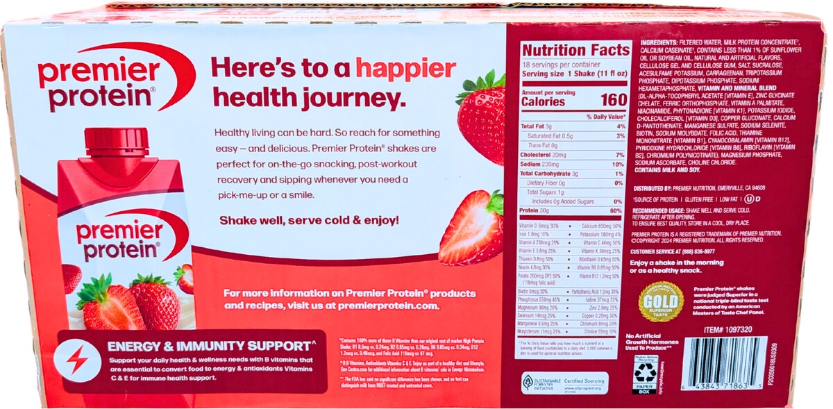 Premier 30g Plus High Protein Shake Strawberries & Cream 18 Ct x 11 Fl Oz 10/26