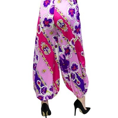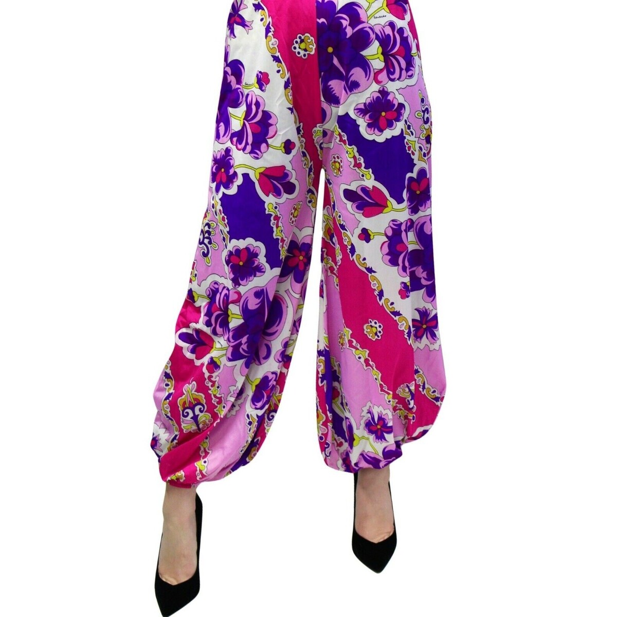 What you?ll love about these 1960s Eduardo harem pants is their jaw-dropping pop art floral swirl print ? signed right in the fabric ? and that incredible balloon-leg silhouette that channels pure mod-era energy. With bold purples, magenta, and cream, these pants are wearable art from the height of the psychedelic movement.