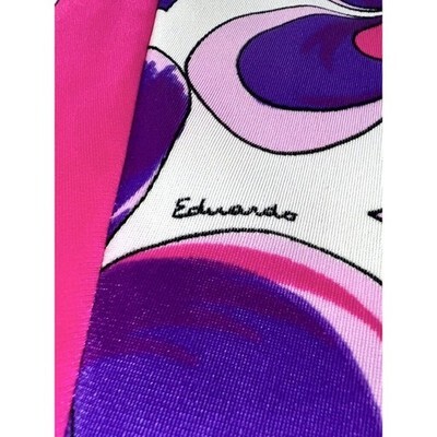 Eduardo was a boutique designer active during the 1960s?70s, known for vivid Op-Art prints and sculptural resort silhouettes. His pieces were produced in small runs, often signed in the textile ? a rarity collectors seek today. This example perfectly captures the free-spirited mod glamour of the Swinging Sixties.
