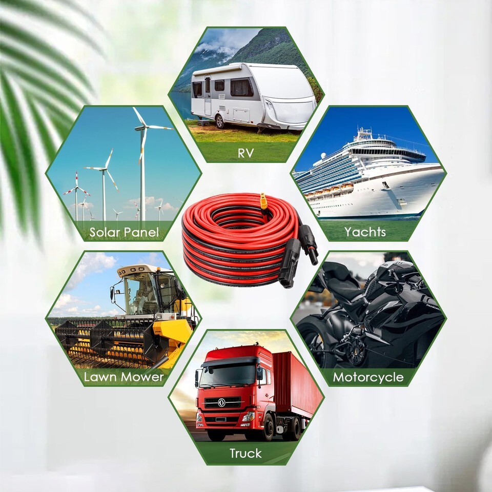 Excellent Conductivity -- This solar to xt60 charge extension cable use heavy duty 10awg tinned copper wire which ensures good electrical conductivity,good durability and flexibility,providing stable current for your device.,Premium Material -- The solar cable is made of 10AWG tinned copper wire,which minimizes power loss and improves charging efficiency.And the shell of the xt60 cable is made of high quality PVC material,which is heat-resistant to 105C,more flexible feature made it can be bends and strapped free-and-easy.,Waterproof Dustproof -- Solar connectors have waterproof and dustproof performance to prevent corrosion,increasing the feasibility of the solar panel extension cable to be used in harsh environment.,Wide Application -- This solar extension cable is used to connect solar panels and solar generators,suitable for all solar generator power stations,battery packs,and any devices with XT60 port.Widely used in outdoor RV,camping,travel,emergency etc.,Package includes -- 1 Pack XT60 adapter to solar connector extension cable.If you are not satisfied with any product, please don?t hesitate to contact us,we will serve you our best.