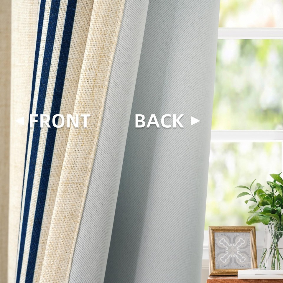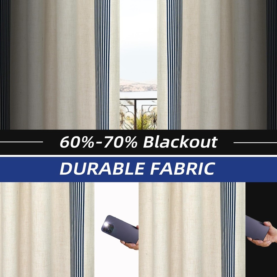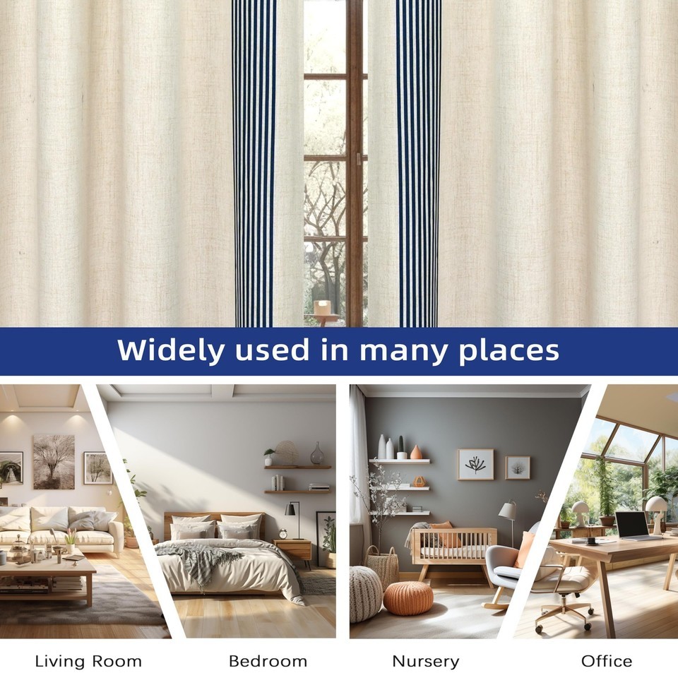 PACKAGE INCLUDES: 2 window treatment panels, the size of the finished look (with pleats) is 52? W X 84? L per panel. Made with durable linen textured fabric, imported.,DESIGN STYLE: Our DriftAway Cabana vertical striped pattern curtain makes a pretty natural look to your windows, gives any room a fresh look. The striped pattern curtain has a classic and elegant design, matches both room color and your customized home styles, fits well for modern / classical / antique / vintage / contemporary / trendy home decor. The linen textured fabric and simple patterns will give your window a graceful vintage look, enhance the taste of your house.,UPGRADED VERSION: Striped blackout curtains effortlessly blend functionality with elegance. With their delicate stripes, these curtains bravely repel the intrusive rays of sunlight, ensuring a peaceful ambience and shielding our private realms. Crafted from premium material, their whisper-soft touch ignites a sense of tranquility. Adorned in a majestic dark blue hue, the curtains harmonize with any decor, infusing a refined charm that captivates all who gaze upon them.,SIZE HEADER TYPE: 52? W X 84? L. Anti-rust grommet slides easily onto your curtain rod for quick installation.,CARE INSTRUCTIONS: Machine washes cold on a gentle cycle in a mesh bag, use only non-chlorine bleach when needed. Tumble dry low, if needed, iron on a cool setting.