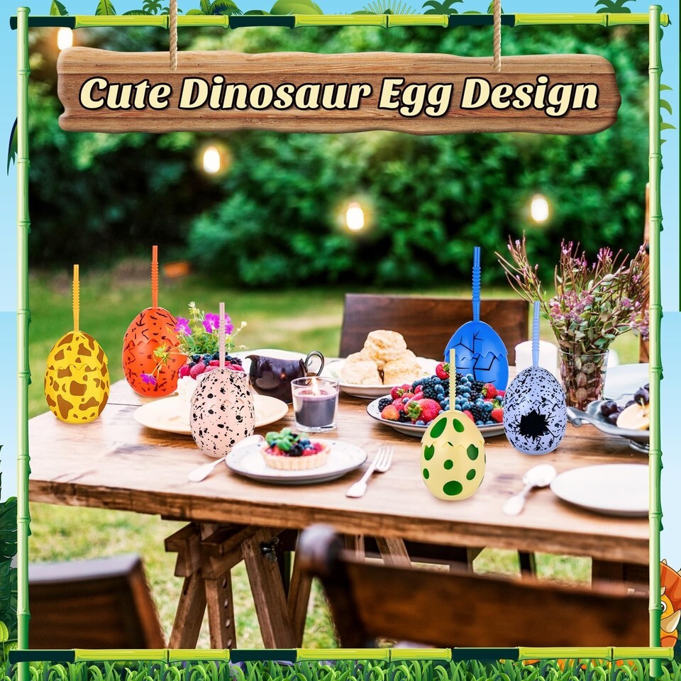 Package Contents: our dinosaur egg cups with straws for boys and girls come in a package that includes 12 pieces of cups with lids and 12 pieces of straws, complete in combination and enough to meet your using needs during the event,Cute Dinosaur Egg Design: our dinosaur party favor cups for boys and girls are designed with a cute and playful dinosaur egg theme design, vivid and interesting, which has 6 colors, adding a fun and festive touch to parties and events,Proper Capacity: with a capacity of 10 oz, our dinosaur cups for kids can keep boys and girls hydrated throughout the party, whether they're drinking water, juice, or other beverages, these cups can hold enough liquid,Reliable Material: made of quality plastic, these reusable dinosaur party cups with lids are reusable, sturdy enough to withstand the wear and tear of daily use and parties, and the material is also safe for boys and girls to use, and is easy to clean,Wide Application: our plastic dinosaur cups with lids and straws are suitable for parties and events, whether you're celebrating a birthday party, baby shower, dinosaur themed party, summer party or other occasions, these cups can make your parties more attractive, and they can also work as party decorations