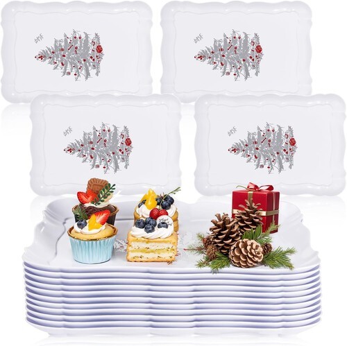 HOW CAN THIS BE A PLASTICPLATE?: You'll get that question a lot. That's how high end these dessert trays look and feel. They each measure 14 x 7.5 inches and are made from premium plastic with a beautifully gold Color And lace edges.,ECONOMICAL ELEGANCE - Finely crafted with a refined gold lace rim design, this White Disposable Serving Tray makes any buffet table extra impressive in serving desserts, appetizers, pastries, and more. It provides the same elegance as ceramic or wooden trays ?,Despite being tagged as Disposable Serveware, our Serving Trays promise reliable quality that endures multiple uses. Its Premium Plastic Construction offers just the same amount of durability, even better in some, you'll find in regular trays!,- Each set gives you 4 Serving Trays and Platters that you can use in weddings, parties, special events, or when entertaining house guests. The best part is you can wash them, reuse them for the next event, and dispose of them when unusable.