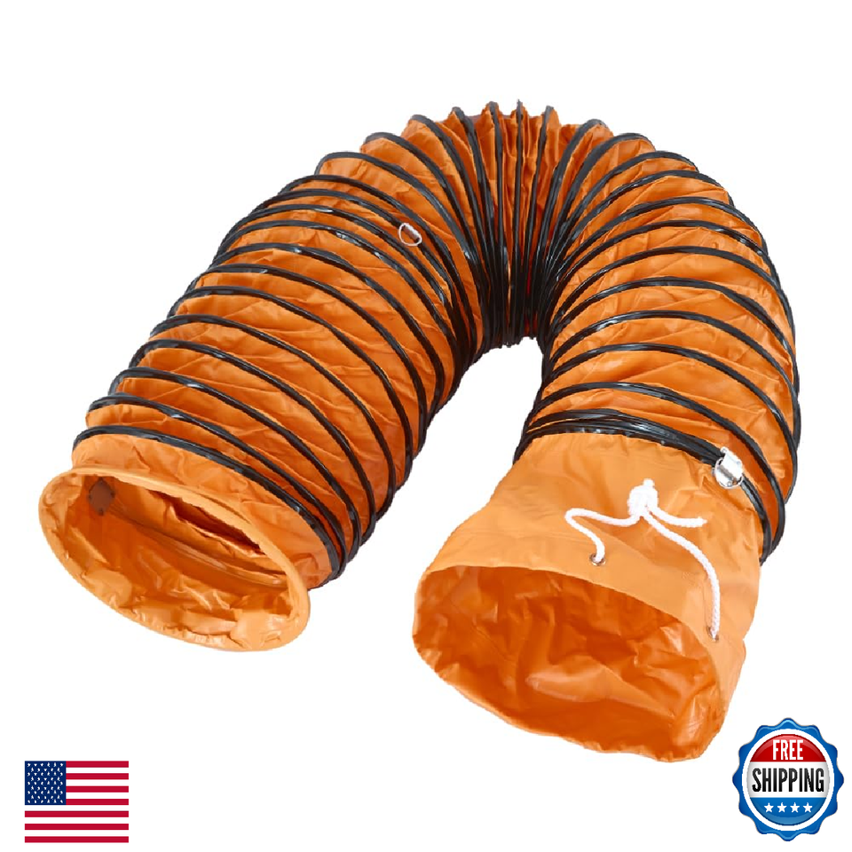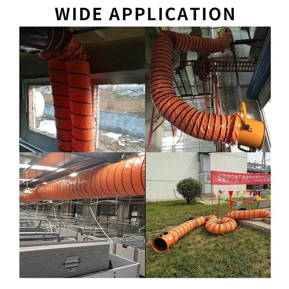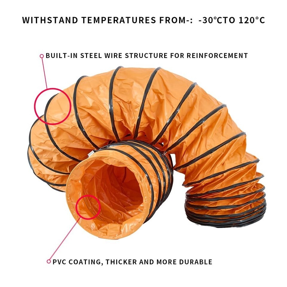 Flexible Duct Hose PVC Flame Retardant Duct Hosing with S Hook Steel Support for Utility Blower Exhaust Fan (10in x 16ft, Orange)