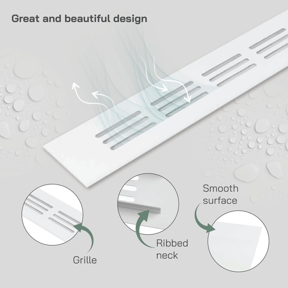 PRECISE DIMENSIONS: OPENING DIMENSIONS are 18.50" x 0.94" inches. OVERALL DIMENSIONS: 19.69'' x 1.57'' inches. INSERTION DEPTH is 0.35" inches. NO MOUNTING HARDWARE INCLUDED NO PRE-DRILLED SCREW HOLES.,QUALITY EASY CLEANING: The door air vent is crafted from aluminum ensuring durability while resisting rust and corrosion. Enjoy hassle-free maintenance with the easy-to-clean design saving you time and effort in keeping your furniture looking its best.,SIMPLE INSTALLATION: Install the grille effortlessly using glue only (GLUE NOT INCLUDED) for a fast and simple setup.,SLEEK AESTHETICS: Elevate the visual appeal of your furniture wall with the door air vent grille 's sleek and minimalist design adding a touch of modern sophistication to any room. For installation in HVAC ducting as well interior door vent.,DOOR VENTS FOR INTERIOR DOORS: Tailored for integration into an interior door, wardrobe, cabinet, cupboard, radiator and furniture. The door grille efficiently enhances airflow and indoor ventilation contributing to improved air quality within enclosed spaces. Vent covers for home, kitchen, bathroom, door, garage, attic.