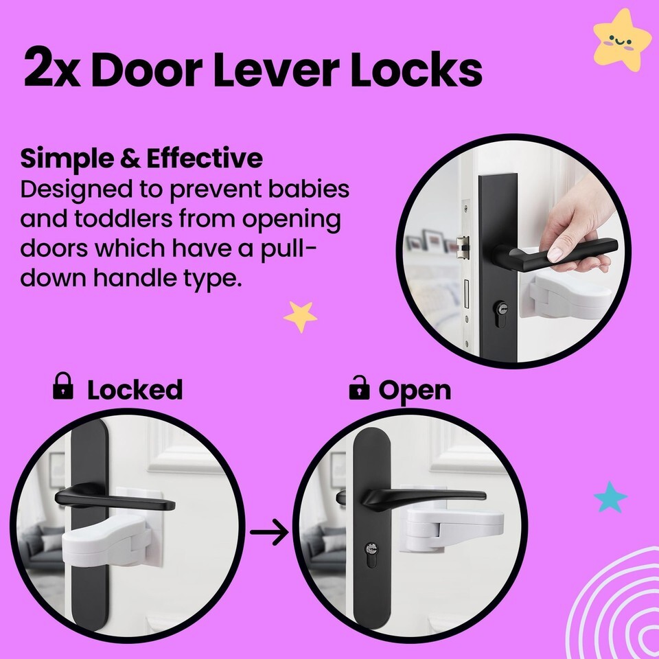 HUGE SAFETY KIT - x42 Pack Child Safety Kit: Keep your children safe at home with the must have child proofing set. Our bundle includes x10 safety lock straps, x10 corner guards, x20 outlet socket protectors, x2 door lever locks,EASY TO INSTALL ? NO TOOLS REQUIRED: Childproofing your home has never been easier. Apply the kids security locks onto your chosen surface and click the lock into place. No tools or drilling required.,MULTIPLE USES: Keep your whole house safe childproof with many uses such as cupboards, cabinets, refrigerators, appliances, wardrobe, drawers, trash cans microwave, washing machines, dishwasher toilet seats.,NO DAMAGE: Don?t worry about your furniture, these straps corner guards leave no residue and won?t cause any damage once removed.,MODERN DESIGN: Sleek Modern babyproof design aesthetically pleasing design to match the modern and traditional kitchen and home. A baby proofing kit that is both slick in performance and fits into any home,