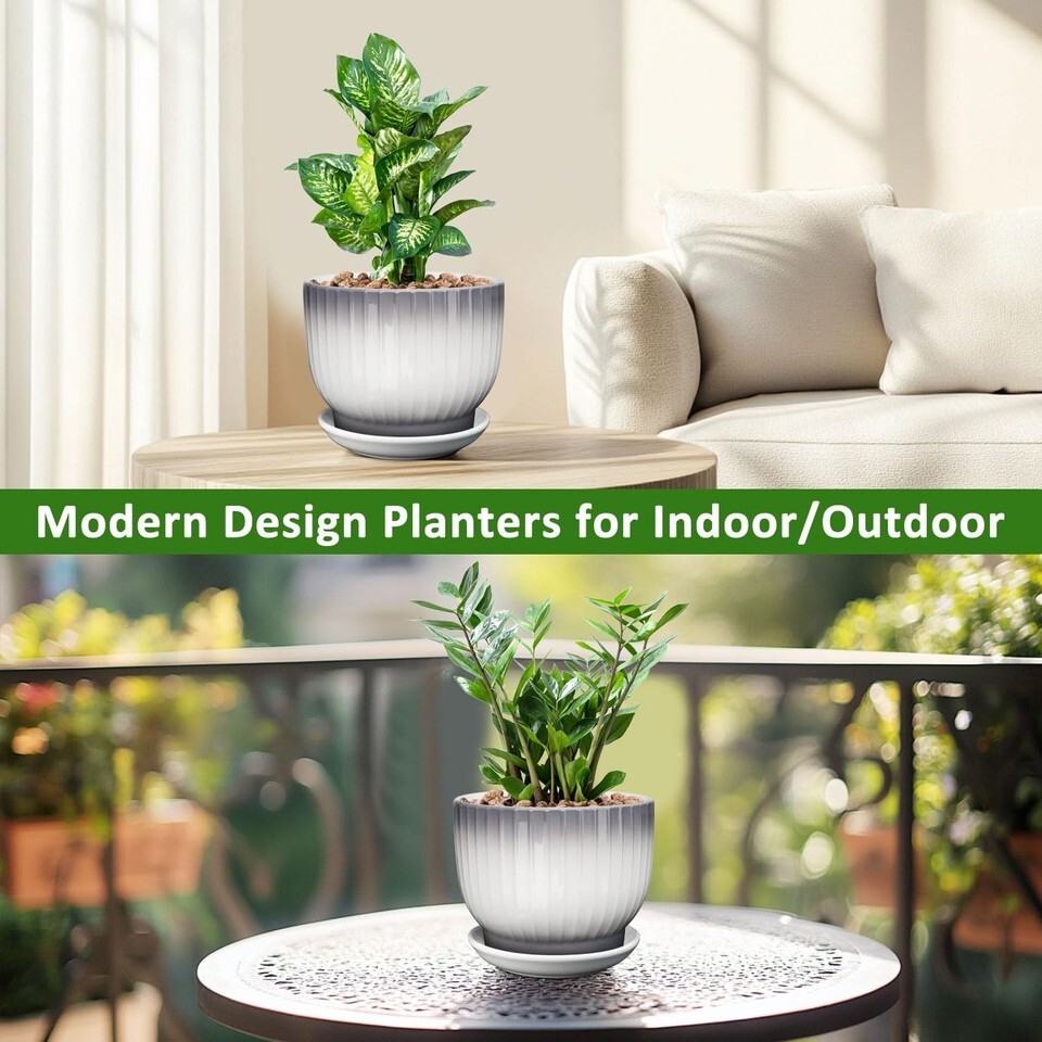 YUFDA 8" Ceramic Plant Pot Planter w/ Drainage & Saucer Indoor Gray White